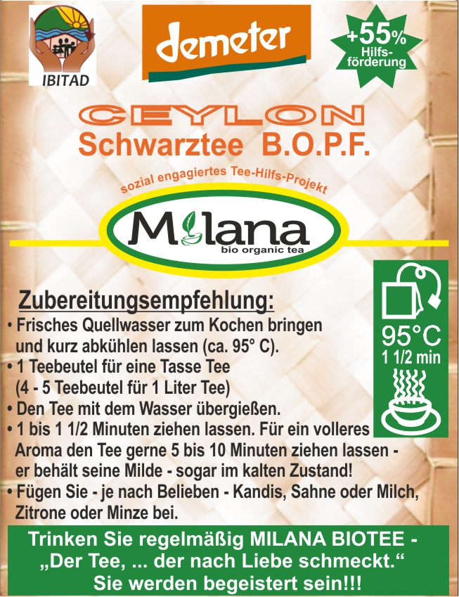 All unsere MILANA Fairtrade Demeter BIOTEES gewährleisten eine gleichbleibend hohe Qualität bis weit über das Erreichen des Mindesthaltbarkeitsdatums hinweg.