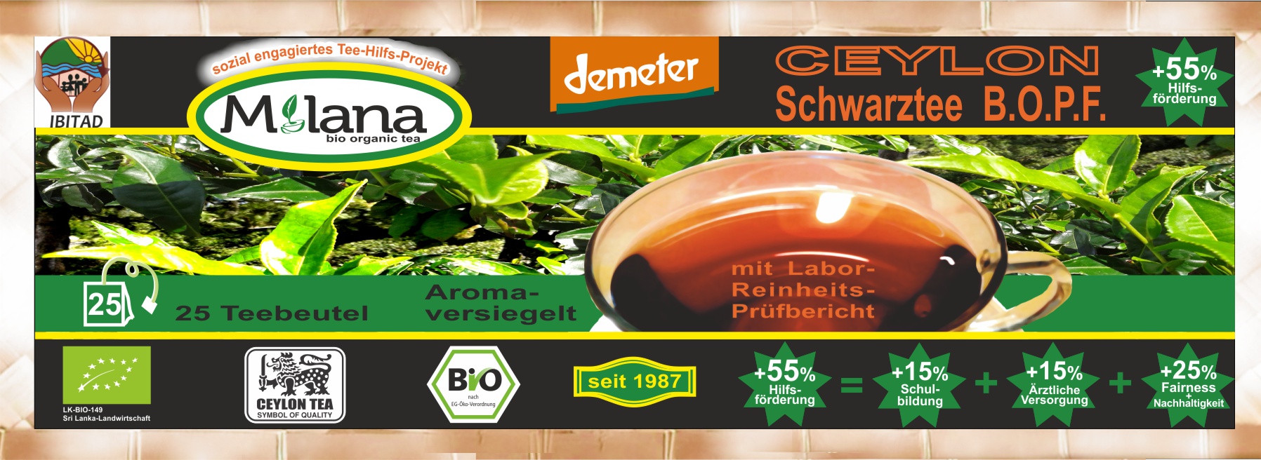 25 Milana Demeter Bio-Schwarztee Teebeutel B.O.P.F. (Broken Orange Pekoe Fannigs) reiner, Ceylon Single Garden Tee aus kontrolliert Biologisch-Dynamischem und ökologischem Anbau. Fair und nachhaltig hergestellt.