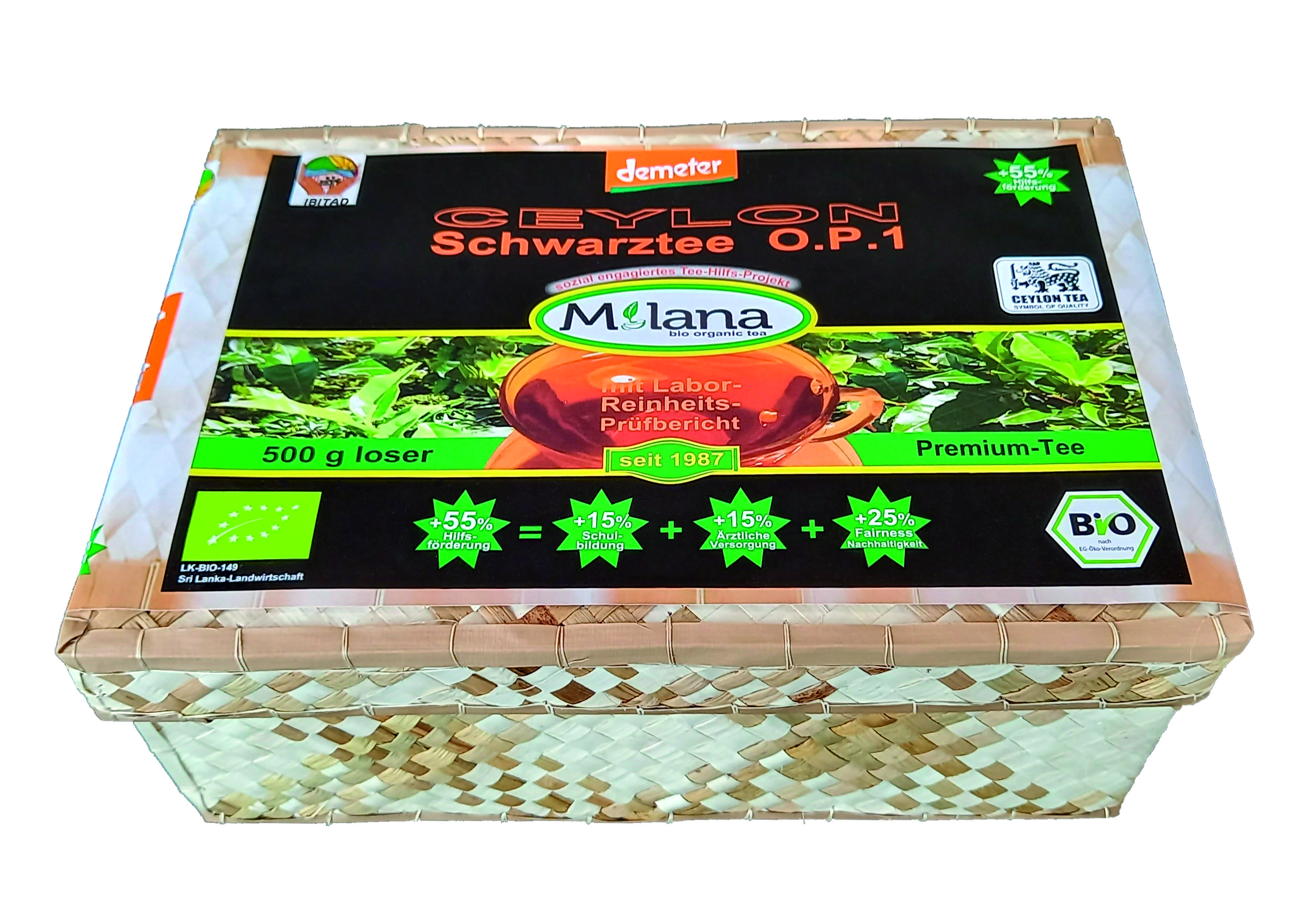 500 g MILANA Ceylon Demeter ORGANIC Loose BLACK TEA OP1 Orange Pekoe 1 packed into handwoven baskets - with 55 percent benefits support - The Tea, ... that tastes like Love. Fairly and sustainably manufactured.